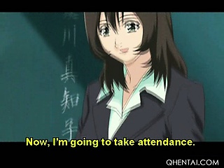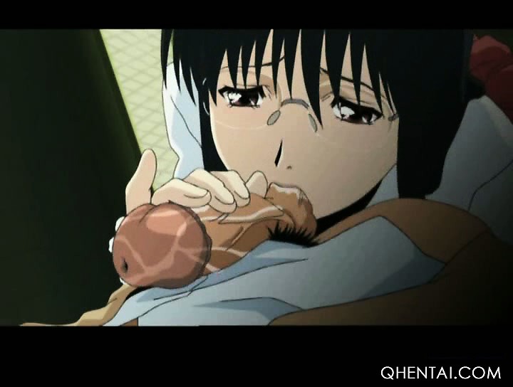 Lusty hentai schoolgirl blowing huge dick on knees