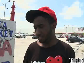 Black thug sucks a big hairy cock outdoors
