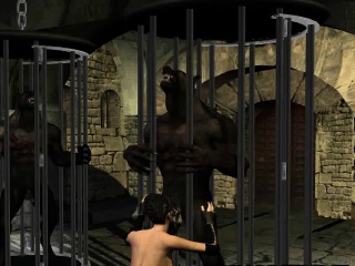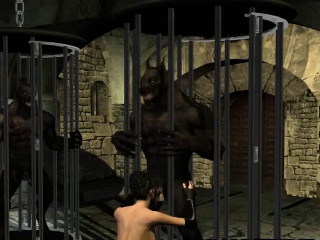Yummy 3D cartoon brunette sucks on a werewolfs cock