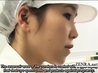 Subtitled CFNM Japan condom laboratory handjob research