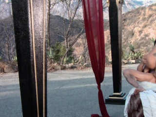 Lustful egyptian queen is blowing her subject outdoor