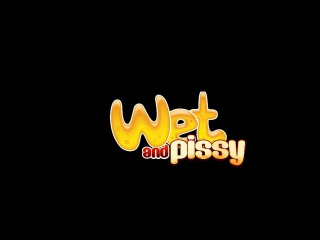 Big breasted teen sits and plays in her own pee