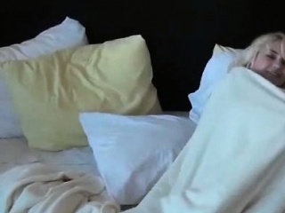 Delicate blonde teen flashing her small boobs in POV style