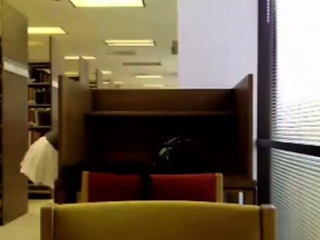 Hot college babe shows tits and pussy in library