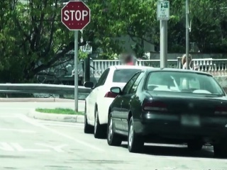 Stranded blonde fucked closeup in dudes car