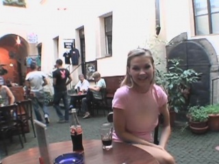 Blonde Amateur Girl Flashing Her Tits On Public Patio
