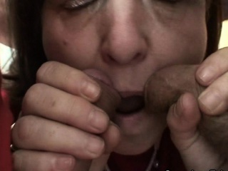 Busty granny in stockings rides and sucks at same time