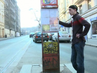 Fatty picks up him from tram stop and fucks