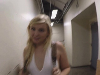 Cute blonde got money for sucking a dick