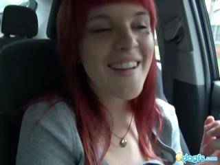 Redhead Emo car driving horny