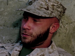 Buff soldier bears jizz