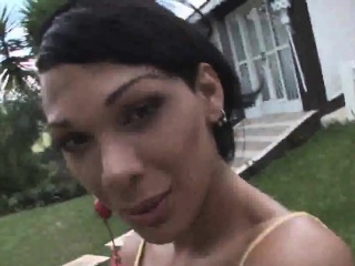 Smoking hot latina t-girl Marcella Italy jerks off cock