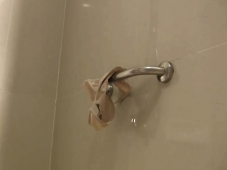Asian brunette ladyboy jerks off and cumshots for the camera