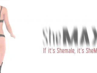 Stunning teen shemale is jerking cock in pink bra and thong