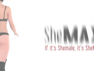 Asian TS in pink bikini strokes girlish cock in the shower