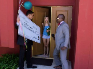 Juicy ass blonde Jillian Janson takes two huge black cock