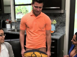 Huge titted MILF teaches teen babe how to fuck like a pro