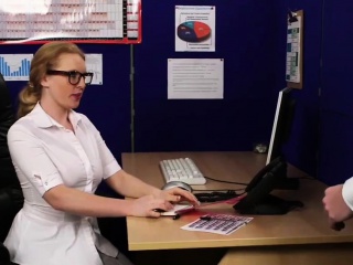 Bigtitted cum loving secretary tugging dick
