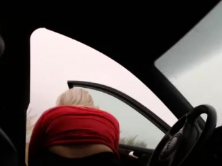 A woman who masturbates outdoors by car