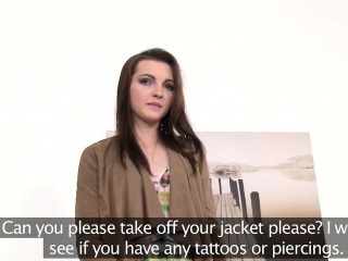 Wonderfull brunette shy babe shows her perky tits on casting