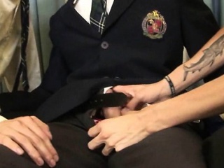 Cute college boys kiss and eat meat in a threesome