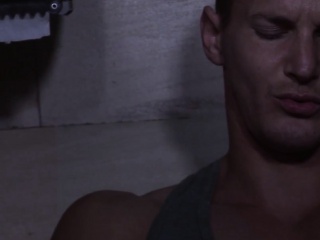 Muscular voyeur cocksucking jerking hunk