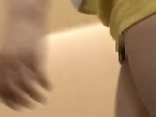 Sexy teen in a short yellow skirt is filmed while she's bow