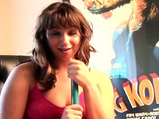 Busty brunette teen puts dildo between boobs