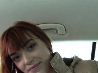 German redhead amateur bangs in car for money