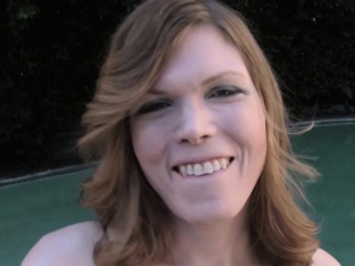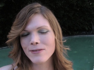 Amateur tgirl tugging her cock by the pool