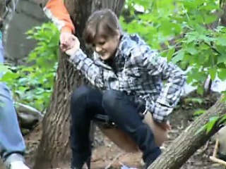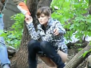 Pissing Whore in Woods NASTY