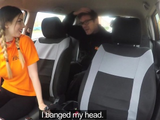 Sexy teen sucks and fucks in driving school car