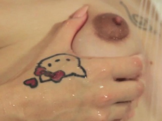 Solo busty trans beauty rubbing cock in bath