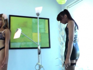 Black lesbo tgirl Honey Foxxx stokes cock