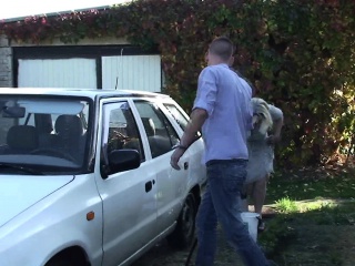 Her boyfriend cheating with blonde motherinlaw outside