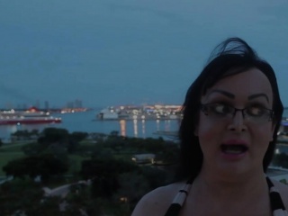 Stockinged tgirl toying her tight chubby ass