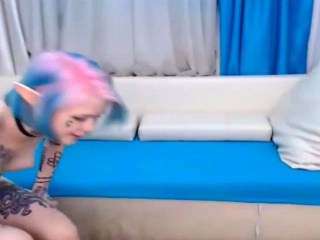 Sexy Pink Haired Teen Shows Small Tits