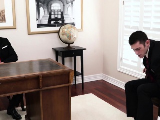 Handsome older priest fucks tall hairy boy in the temple