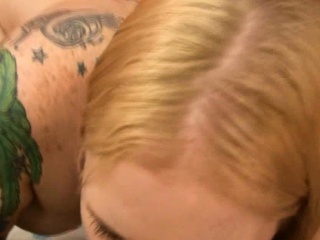 Chubby tattooed chick sucking a cock