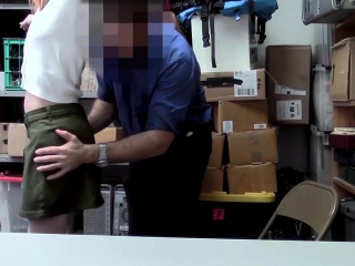Hot skinny redhead teen shoplifter gets caught stealing