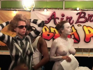 Softcore action with body painted mature beauties