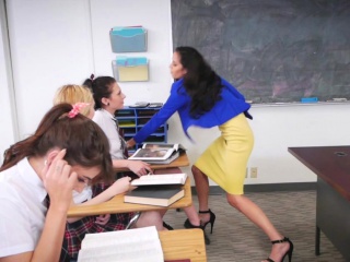 Lesbian teen BFFs fingering their hot tied teacher
