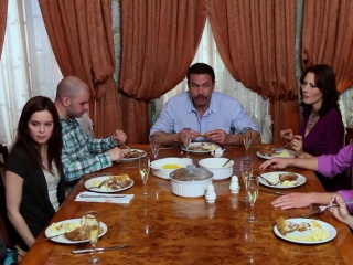 Lingerie lesbians rim and finger after dinner