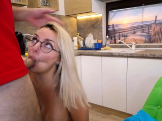Blonde big tits cheating wife does blowjob on webcam