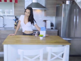 Horny busty MILF stepmom cooks a stepsons huge cock