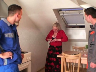 Very old busty granma pleases two boys teen