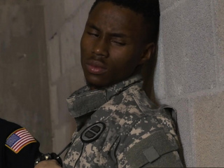Bogus soldier is taken to warehouse by perverted milf cops