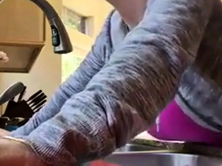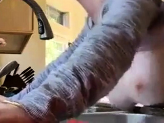 Bent over the kitchen sink