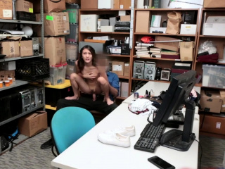 Teen asian shoplifter throats and fucked by store officer