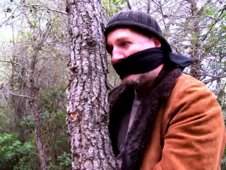 Sexy brunette pleasures two boners while outdoors